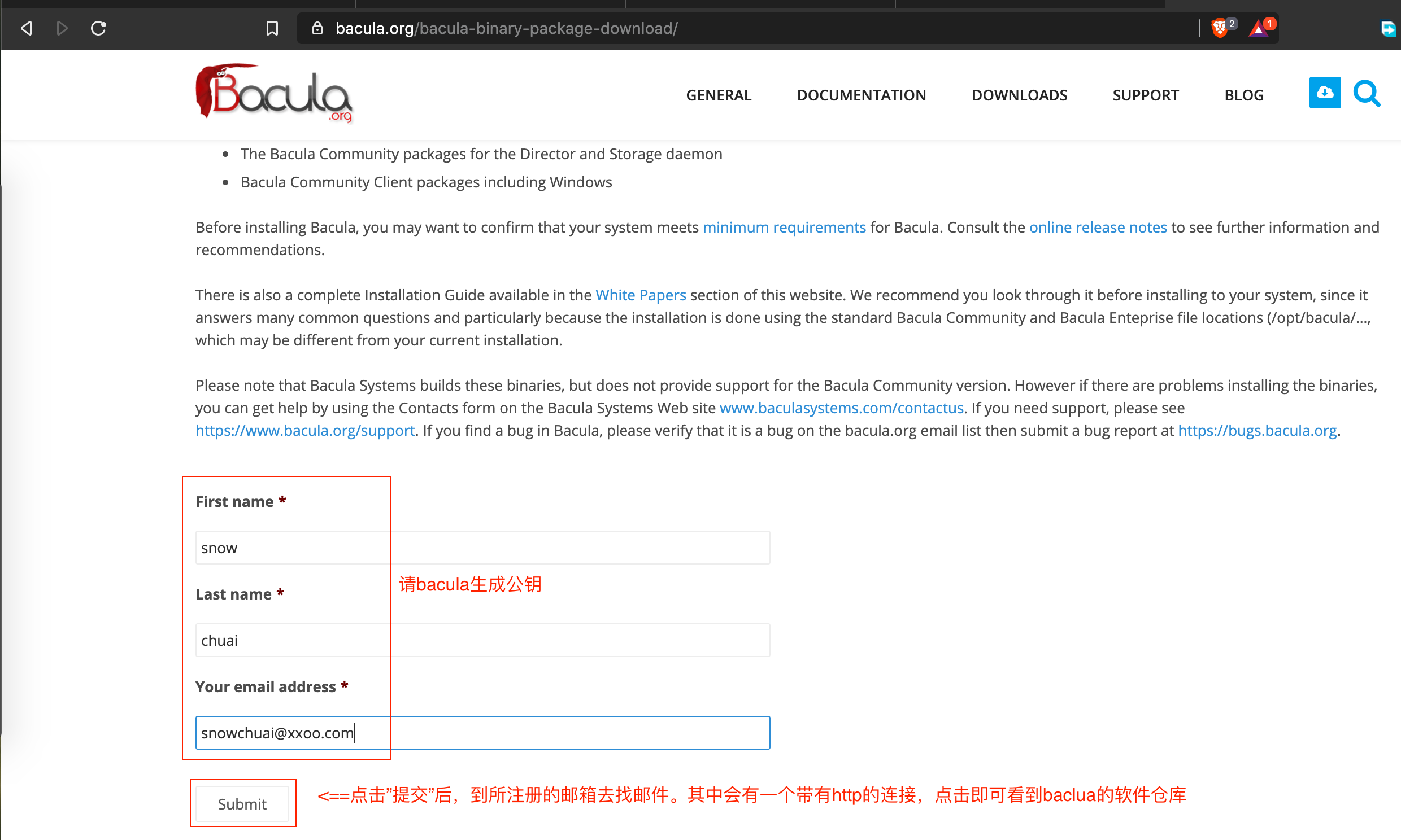 1) 获取公钥 [浏览器]====>https://www.bacula.org/bacula-binary-package-download/ |